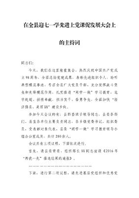 在全县迎七一学先进上党课促发展大会上的主持词.docx