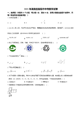 精品解析:湖南省衡阳市2021年中考数学真题(原卷版).doc
