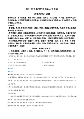 精品解析:2021年江苏省无锡市中考道德与法治试题(解析版).doc