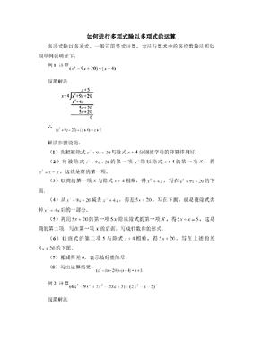 拓展材料:如何进行多项式除以多项式的运算(初中数学7年级下册).doc