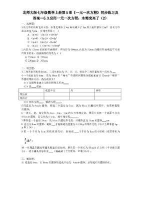 北师大版七年级数学上册第5章《一元一次方程》同步练习及答案—5.3应用一元一次方程:水箱变高了(2).doc