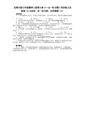 北师大版七年级数学上册第5章《一元一次方程》同步练习及答案—5.4应用一元一次方程:打折销售(1).doc