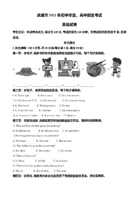 精品解析:甘肃省武威市2021年中考英语试题(原卷版).doc
