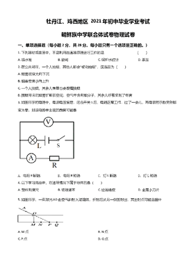 精品解析:2021年黑龙江省牡丹江、鸡西地区朝鲜族学校中考物理试题(原卷版).doc