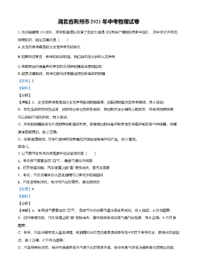 精品解析:2021年湖北省荆州市中考物理试题(解析版).doc