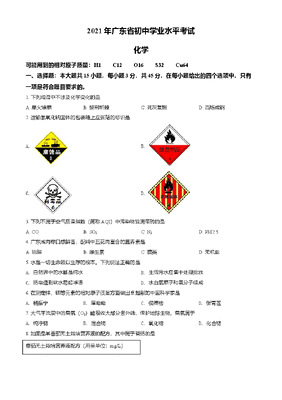 精品解析:广东省2021年中考化学试题(原卷版).doc