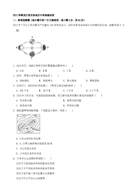 精品解析:2021年黑龙江省龙东地区中考地理真题(word,解析版).docx