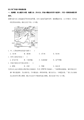 精品解析:2021年广东省中考地理真题(word,解析版).docx