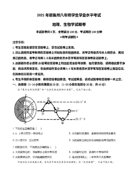 精品解析:湖北省恩施土家族苗族自治州2021年中考地理生物真题(地理部分)(原卷版).doc