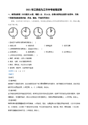 精品解析:江西省九江市2021年中考地理真题(解析版).doc