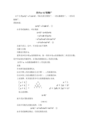 拓展材料:关于完全平方和公式的推广(初中数学7年级下册).doc