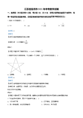精品解析:江苏省扬州市2021年中考数学试题(解析版).doc