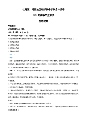 精品解析:黑龙江省牡丹江、鸡西地区朝鲜族学校2021年中考生物试题(解析版).doc