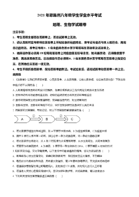 精品解析:湖北省恩施州2021年中考生物试题(原卷版).doc