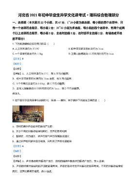 精品解析:2021年河北省中考物理试题(解析版).doc