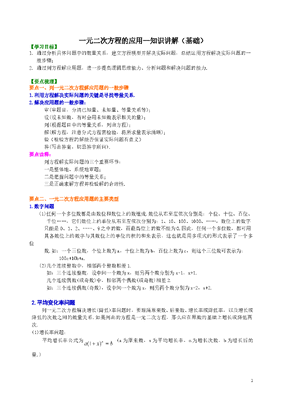 初中数学9年级一元二次方程的应用--知识讲解(基础).doc