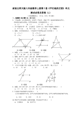 新版北师大版八年级数学上册第7章《平行线的正面》单元测试试卷及答案(1).doc