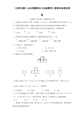 (北师大版)山东省潍坊市七年级数学上册期末试卷及答案.doc