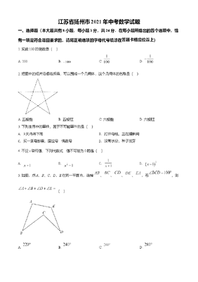 精品解析:江苏省扬州市2021年中考数学试题(原卷版).doc