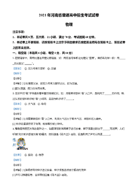 精品解析:2021年河南省中考物理试题(解析版).doc