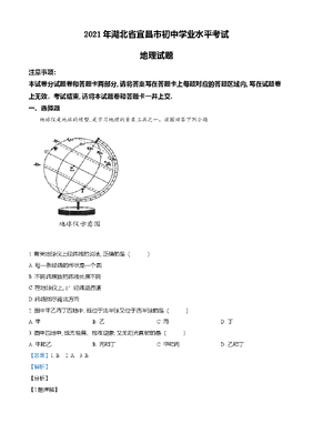 精品解析:湖北省宜昌市2021年中考地理、生物真题(地理部分)(解析版).doc