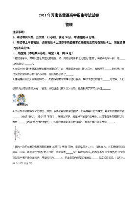 精品解析:2021年河南省中考物理试题(原卷版).doc