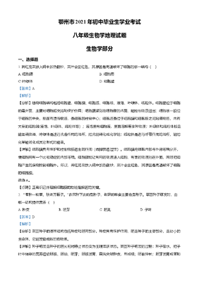 精品解析:湖北省鄂州市2021年中考生物试题(解析版).doc