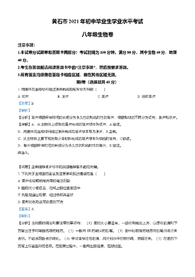 精品解析:湖北省黄石市2021年中考生物试题(解析版).doc