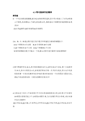 《等可能事件的概率》第二课时同步练习2(初中数学7年级下册).doc