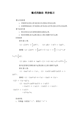 《整式的除法》同步练习(1)(初中数学7年级下册).doc