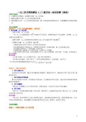 初中数学9年级一元二次方程的解法(二)配方法—知识讲解(基础.doc