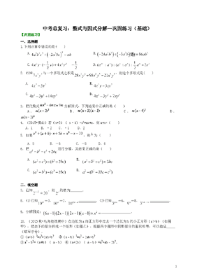 中考数学总复习:整式与因式分解--巩固练习(基础).doc