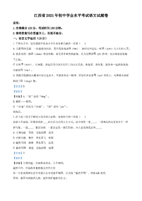 精品解析:江西省2021年中考语文试题(解析版).doc