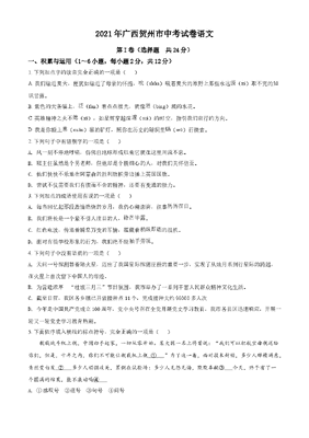 精品解析:广西贺州市2021年中考语文试题(原卷版).doc