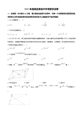 精品解析:湖南省娄底市2021年中考数学真题(原卷版).doc