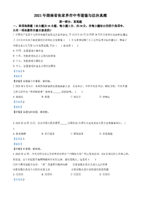 精品解析:2021年湖南省张家界市中考道德与法治真题(解析版).doc