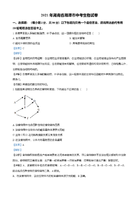 精品解析:湖南省湘潭市2021年中考生物试题(解析版).doc