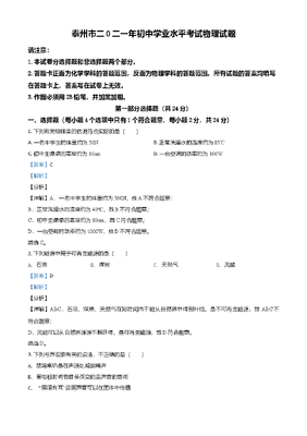 精品解析:2021年江苏省泰州市中考物理试题(解析版).doc