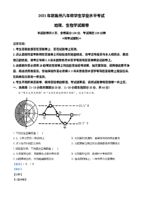 精品解析:湖北省恩施土家族苗族自治州2021年中考地理生物真题(地理部分)(解析版).doc