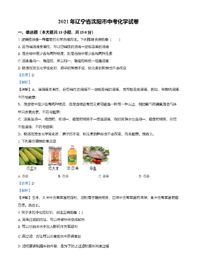 精品解析:辽宁省沈阳市2021年中考化学试题(解析版).doc