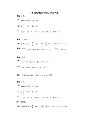 《单项式乘以多项式》典型例题(初中数学7年级下册).doc