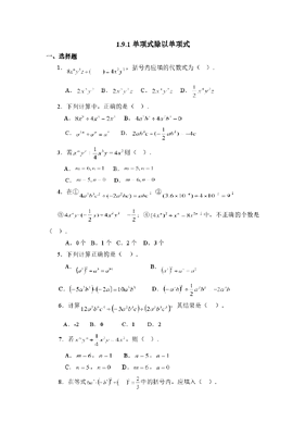 《单项式除以单项式》同步练习(初中数学7年级下册).doc