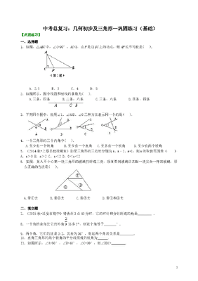 中考数学总复习:几何初步及三角形--巩固练习(基础).doc