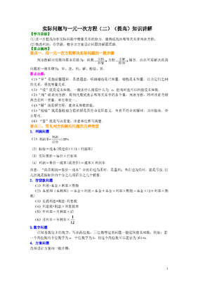 初中7年级(上册)实际问题与一元一次方程(二)(提高)知识讲解.doc