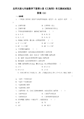 北师大版七年级数学下册第3章《三角形》单元测试试卷及答案(5).doc