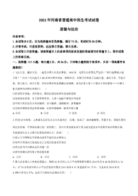 精品解析:2021年河南省中考道德与法治真题(原卷版).doc