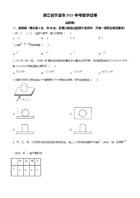 精品解析:浙江省宁波市2021年中考数学试卷(原卷版).doc