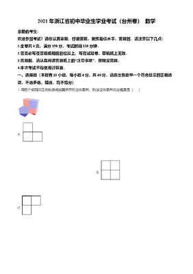 精品解析:浙江省台州市2021年中考数学真题(解析版).doc
