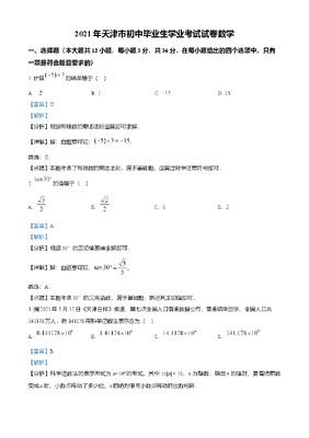 精品解析:天津市2021年中考数学真题(解析版).doc