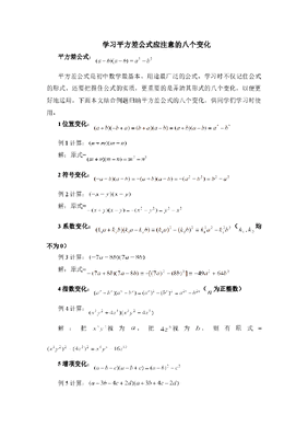 学习平方差公式应注意的八个变化(初中数学7年级下册).doc